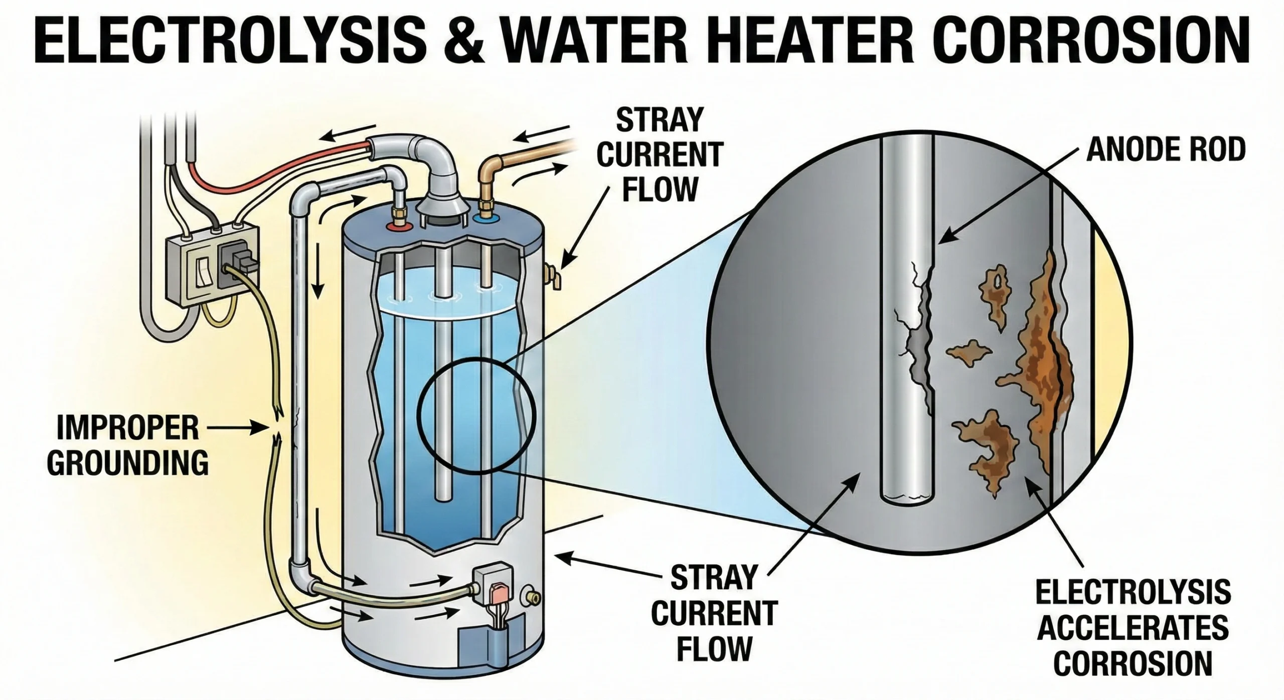 Many homeowners are surprised to hear that stray electrical currents can cause water heater corrosion.